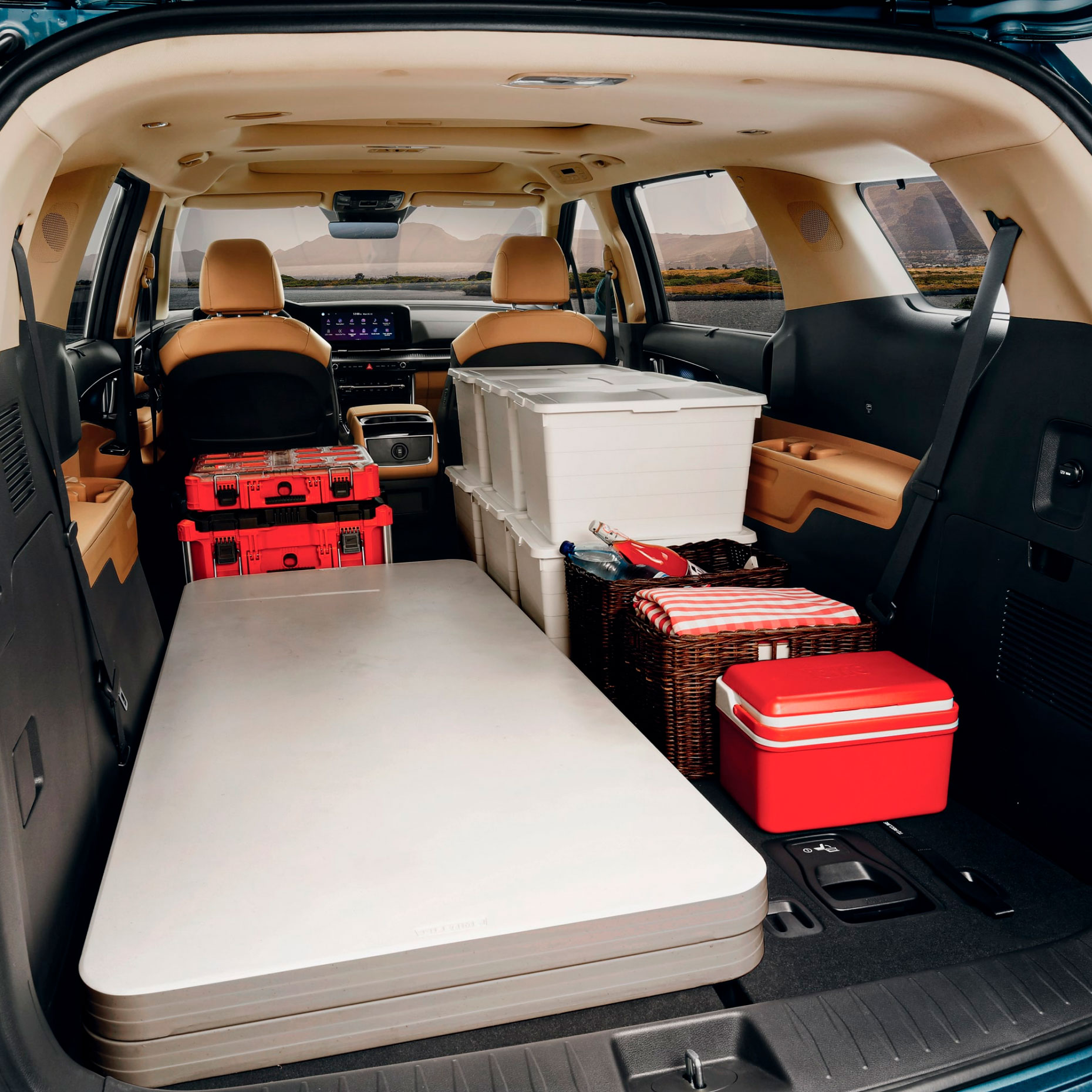 Вы можете повернуть сиденья второго ряда лицом к третьему ряду или сложить центральное сиденье, чтобы организовать удобный столик для всех.