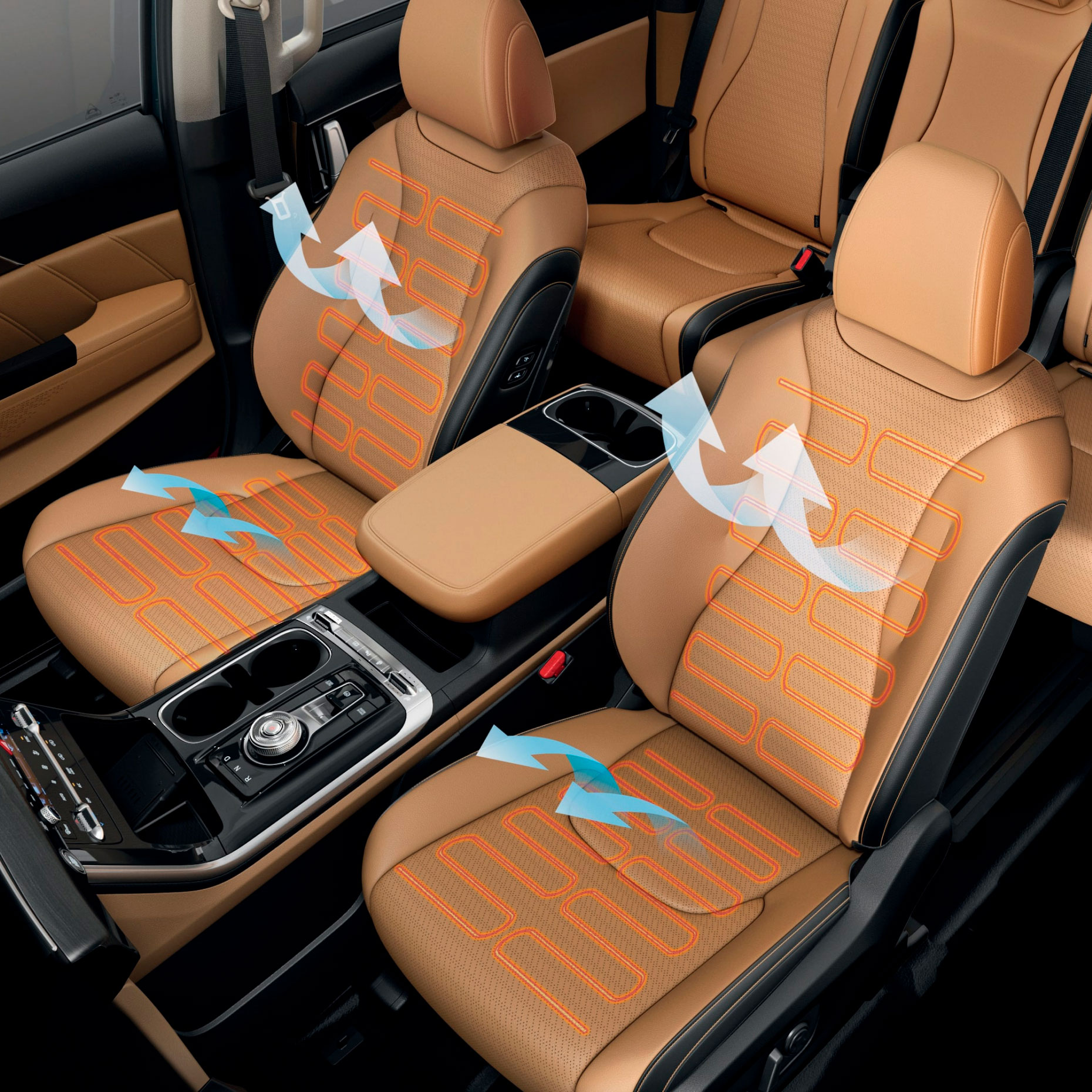Передние сиденья оснащены подогревом и вентиляцией. Оставайтесь в комфорте в любую погоду.