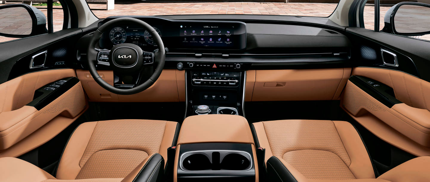 Продуманный и стильный интерьер Kia Carnival позволит Вам комфортно управлять автомобилем, пользуясь удобными кнопками на руле или выбирая необходимые функции на интуитивно-понятном дисплее панели управления, при этом сохраняя внимание на дороге.