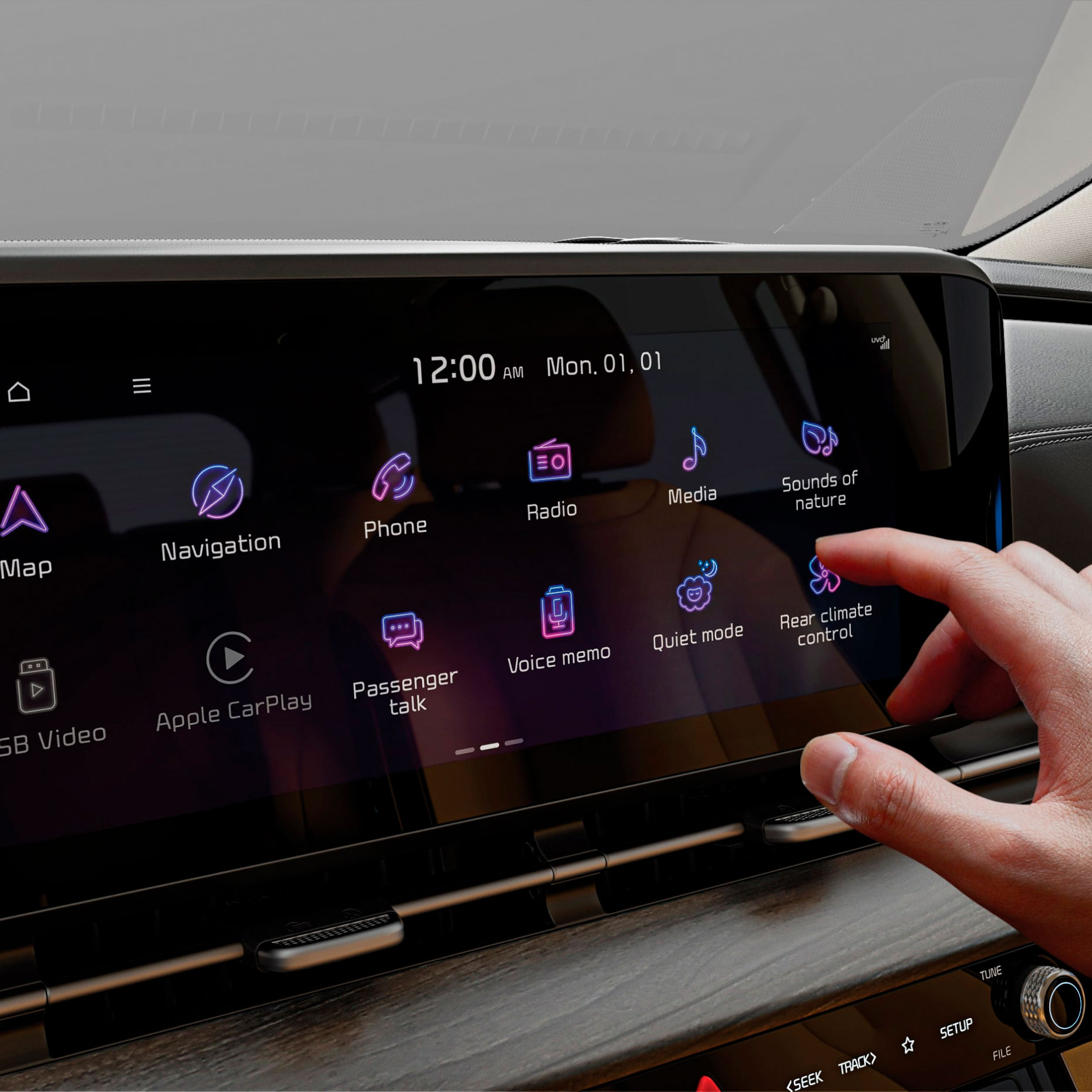 Технологии навсегда изменили вождение. В новом Kia Carnival Вам не придется защищаться от потока информации, ведь на экраны выводятся только актуальные данные. Информационная среда автомобиля спроектирована для того, чтобы Вы наслаждались дорогой, оставаясь в курсе наиболее важной информации.