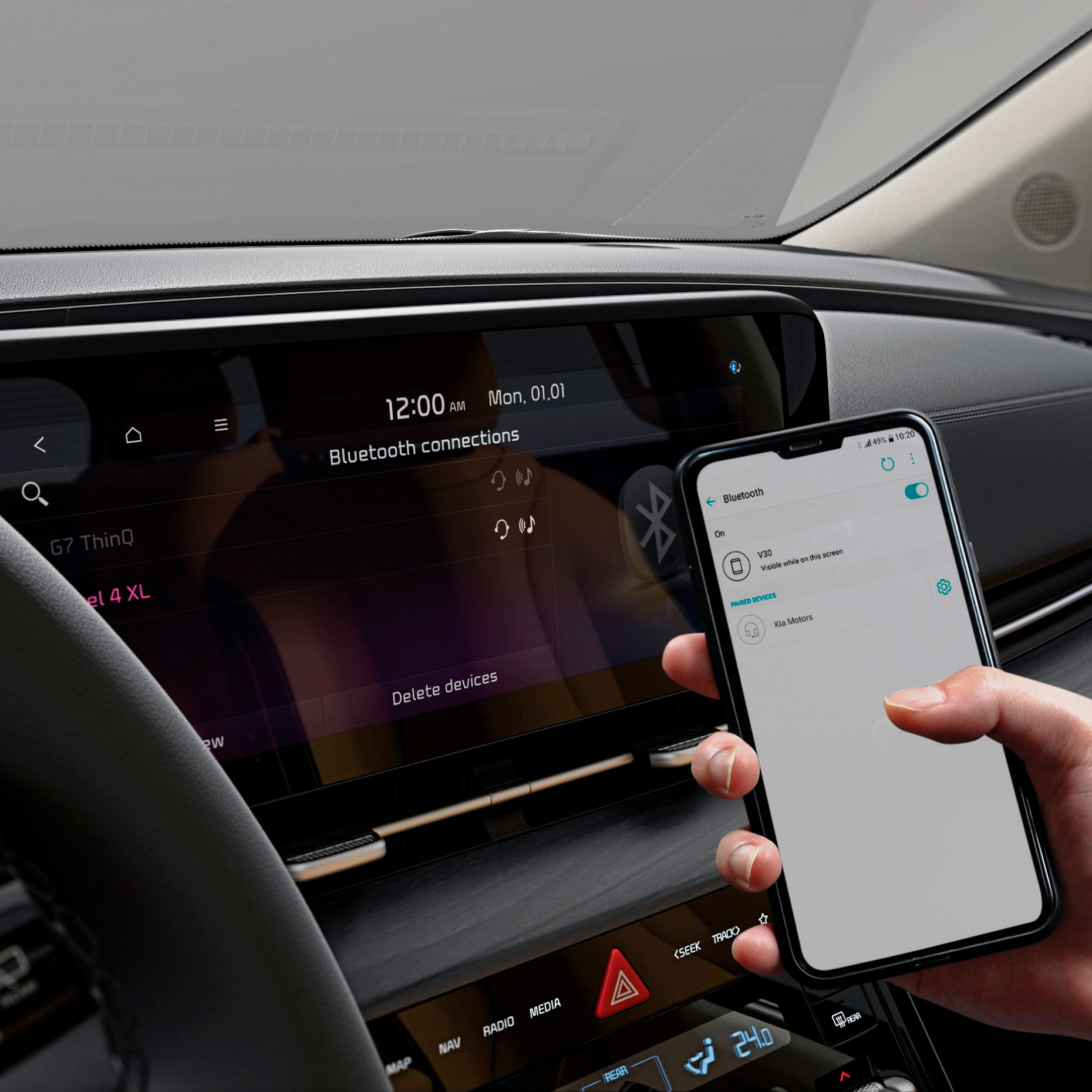 Благодаря встроенному Bluetooth Вы можете подключить совместимый смартфон и слушать музыку, совершать звонки и пользоваться навигацией.