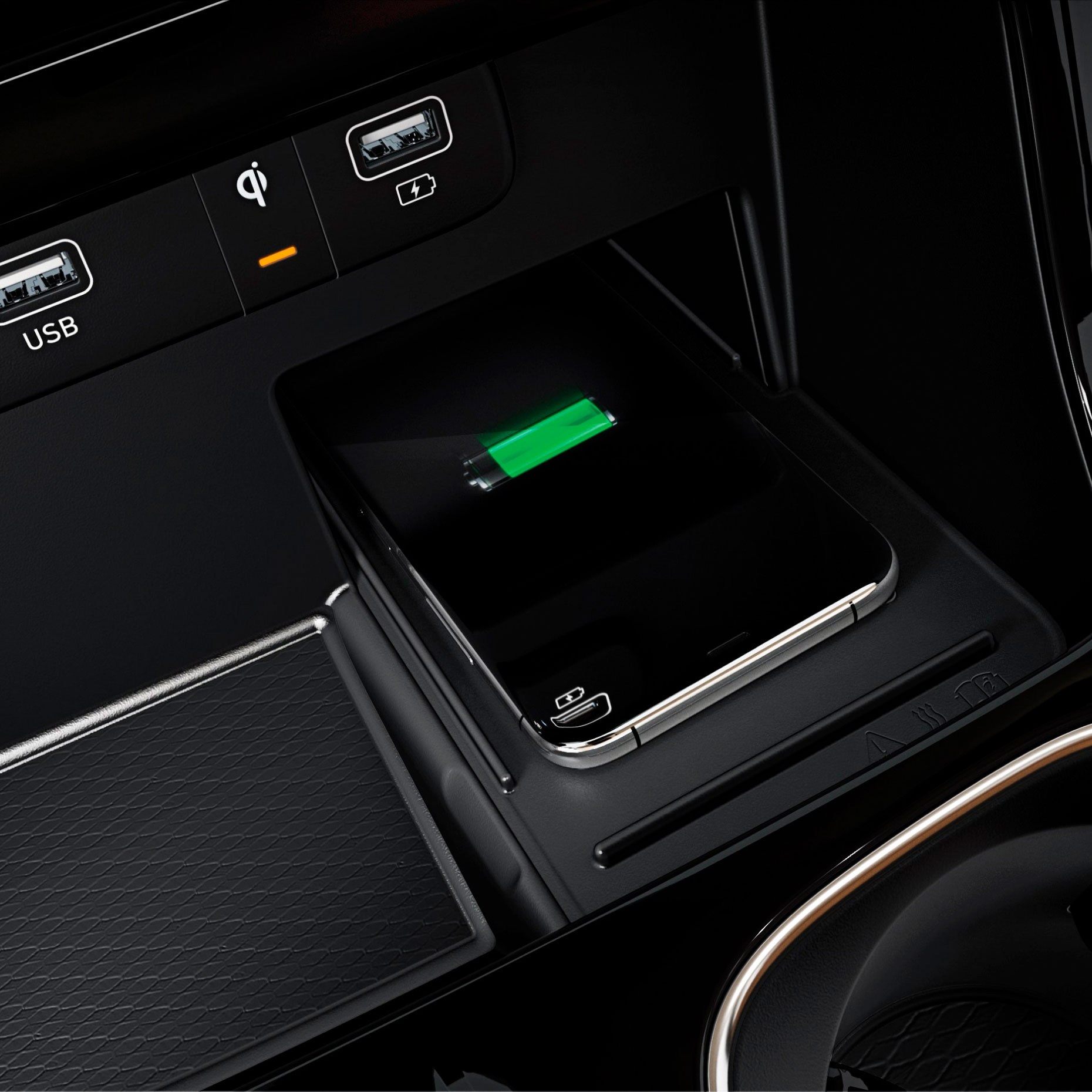 Зарядная панель мощностью до 15 Вт позволит Вам быстро зарядить совместимый смартфон. Индикатор загорится зеленым, когда устройство будет заряжено.