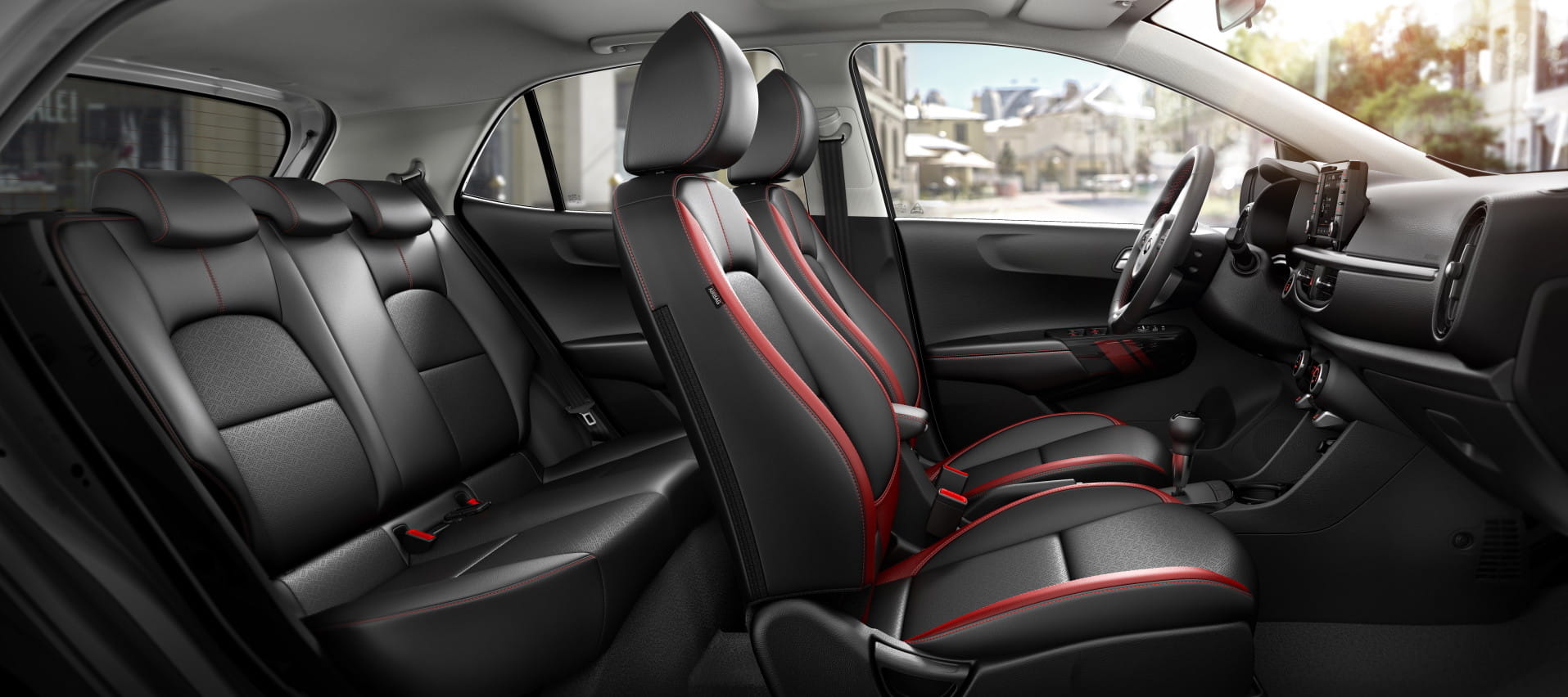 Версия GT Line отличается передним и задним бамперами спортивного дизайна, боковыми молдингами с характерной красной полосой, двойной хромированной накладкой глушителя, глубокой тонировкой стекол задних дверей и пятой двери, алюминиевыми накладками на педалях. Для Kia Picanto GT Line также предусмотрен оригинальный дизайн 16-дюймовых легкосплавных колесных дисков.