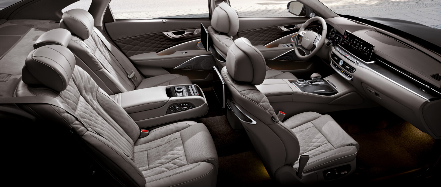 Kia K9 традиционно отличается уровнем ездового комфорта представительского класса: плавностью хода, великолепной защитой от шумов и вибраций. Эти качества поднялись на новый уровень благодаря новой системе электронного управления подвеской с функцией прогнозирования. Система получает информацию о состоянии дорожного покрытия от фронтальной камеры и навигации, и соответствующим образом подстраивает характеристики подвески для максимально комфортного движения.