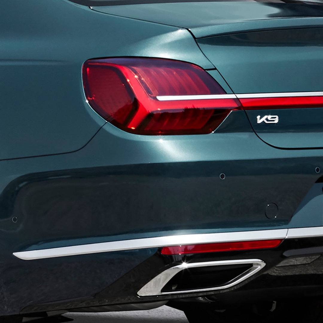 Облик К9 отражает новое направление в дизайне современных моделей Kia, предлагая еще более высокий уровень элегантности премиум-класса. Сочетание тонких линий, массивных деталей и футуристичных дизайнерских элементов придает автомобилю уверенный облик, соответствующий статусу представительского седана.